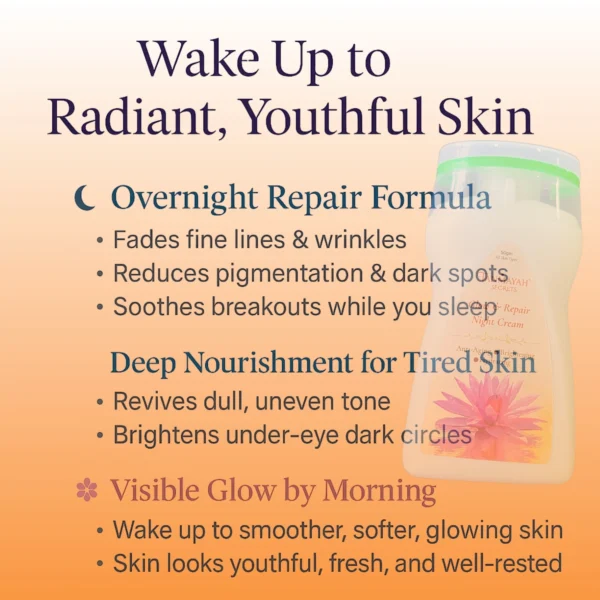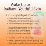 Its lightweight, non-greasy texture absorbs effortlessly into the skin, leaving it feeling soft, supple, and intensely moisturized. While you rest, the blend of antioxidants and botanicals helps reduce freckles, firm the skin, and promote even skin tone. Wake up every morning to skin that looks visibly refreshed, brighter, and youthful.